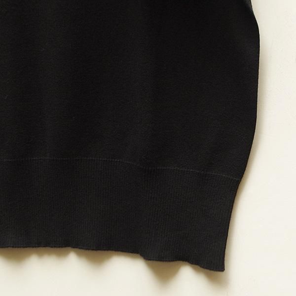1×1のとても細かいリブ編みの素材は伸縮性に優れ、その細かな編立てはハイゲージニットのようなしなやかさと上品さが漂います。